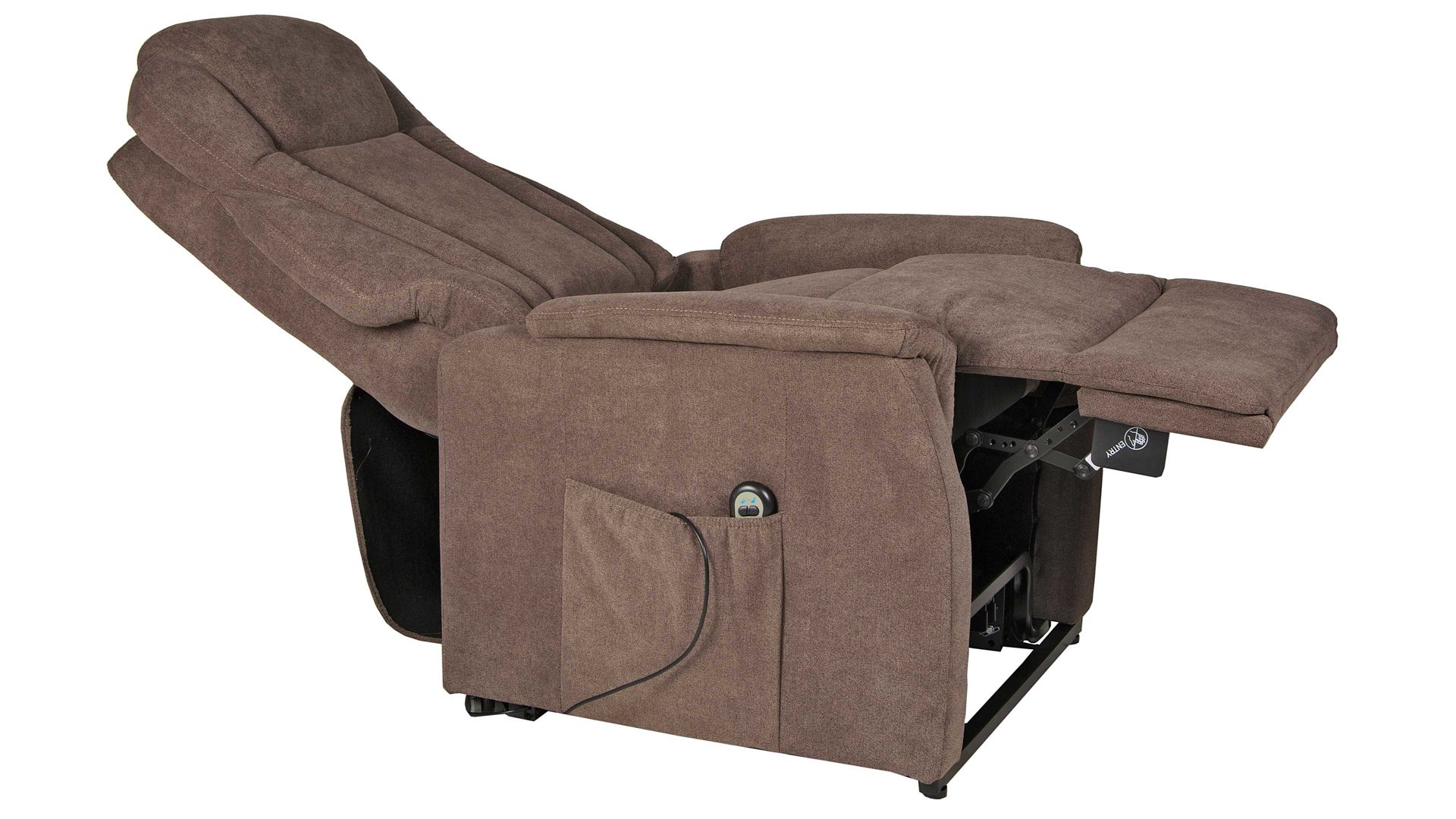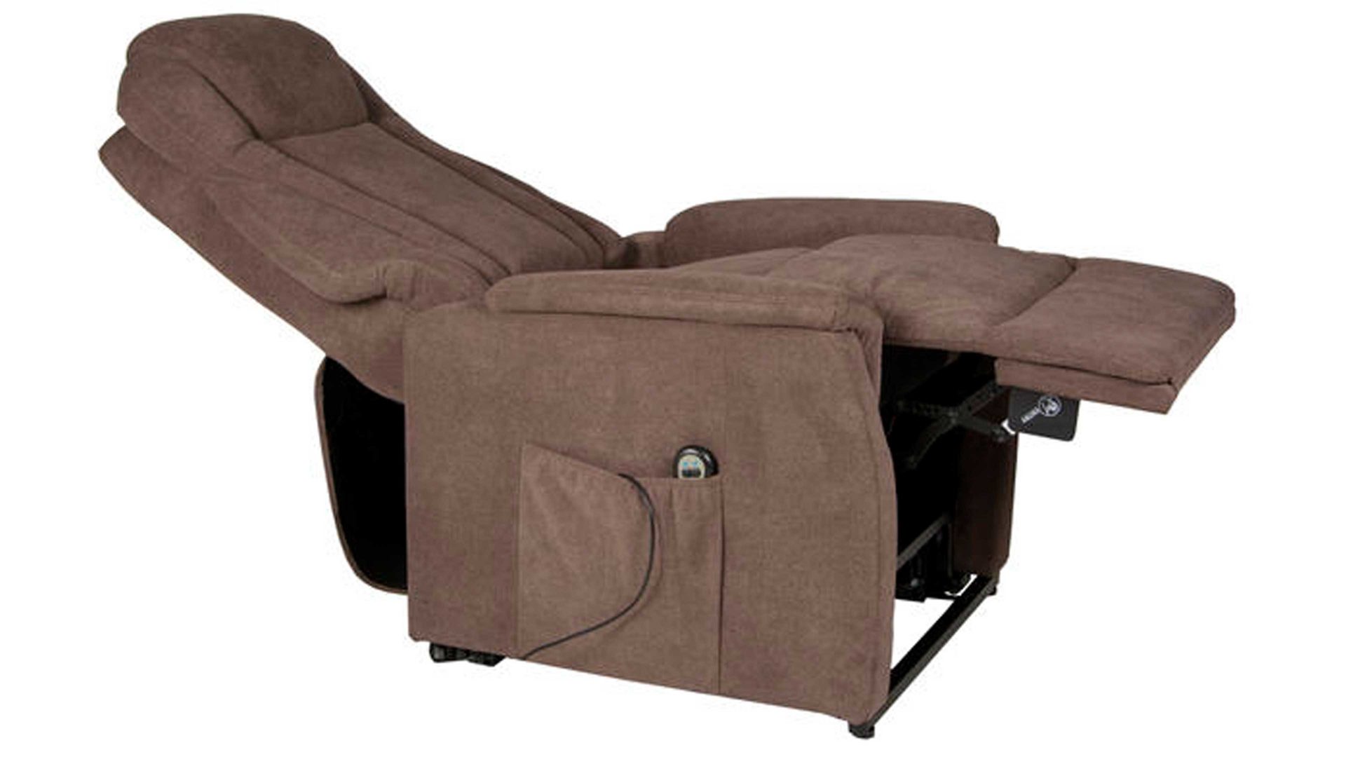 Der Komfortsessel ist mit einem Klemmschutz für Ihre Hände versehen. In puncto Design präsentiert sich der Fernsehsessel schlicht-modern. Er ist mit einem dunkelbraunen Stoff bezogen, der sich dank des gedeckten Farbtons in beliebige Einrichtungskonzepte harmonisch einfügt.