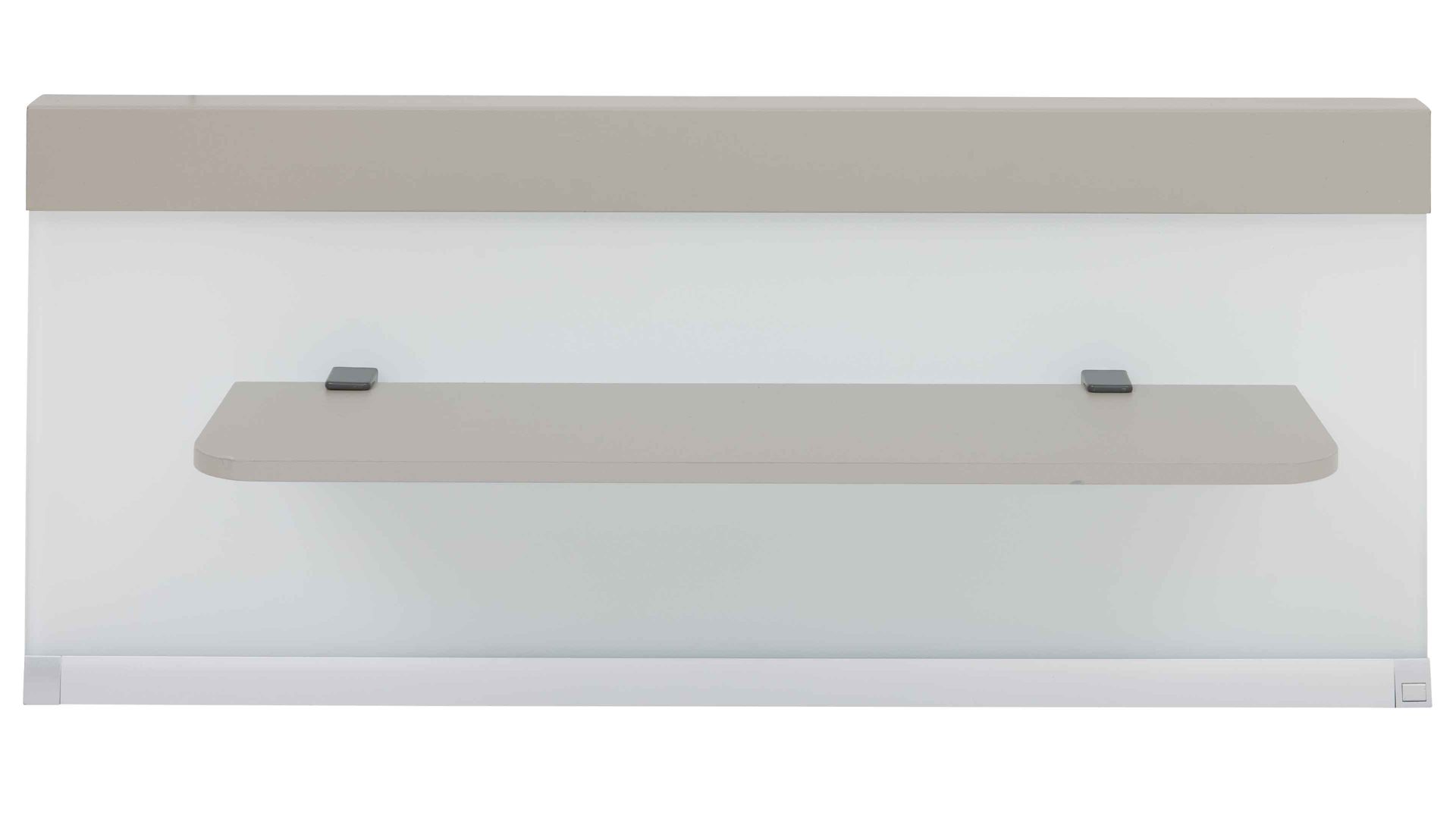 Die Kombination aus kieselgrauen und weißen Kunststoffoberflächen mit weißen Glasauflagen harmoniert perfekt mit der integrierten LED-Beleuchtung. Die fest verbauten LED-Leuchtmittel mit der Energieeffizienzklasse F (Spektrum A bis G) sorgen für ein dezentes, warmes Licht direkt am Bett. Über den praktischen Kippschalter steuerst du die Beleuchtung ganz bequem.
