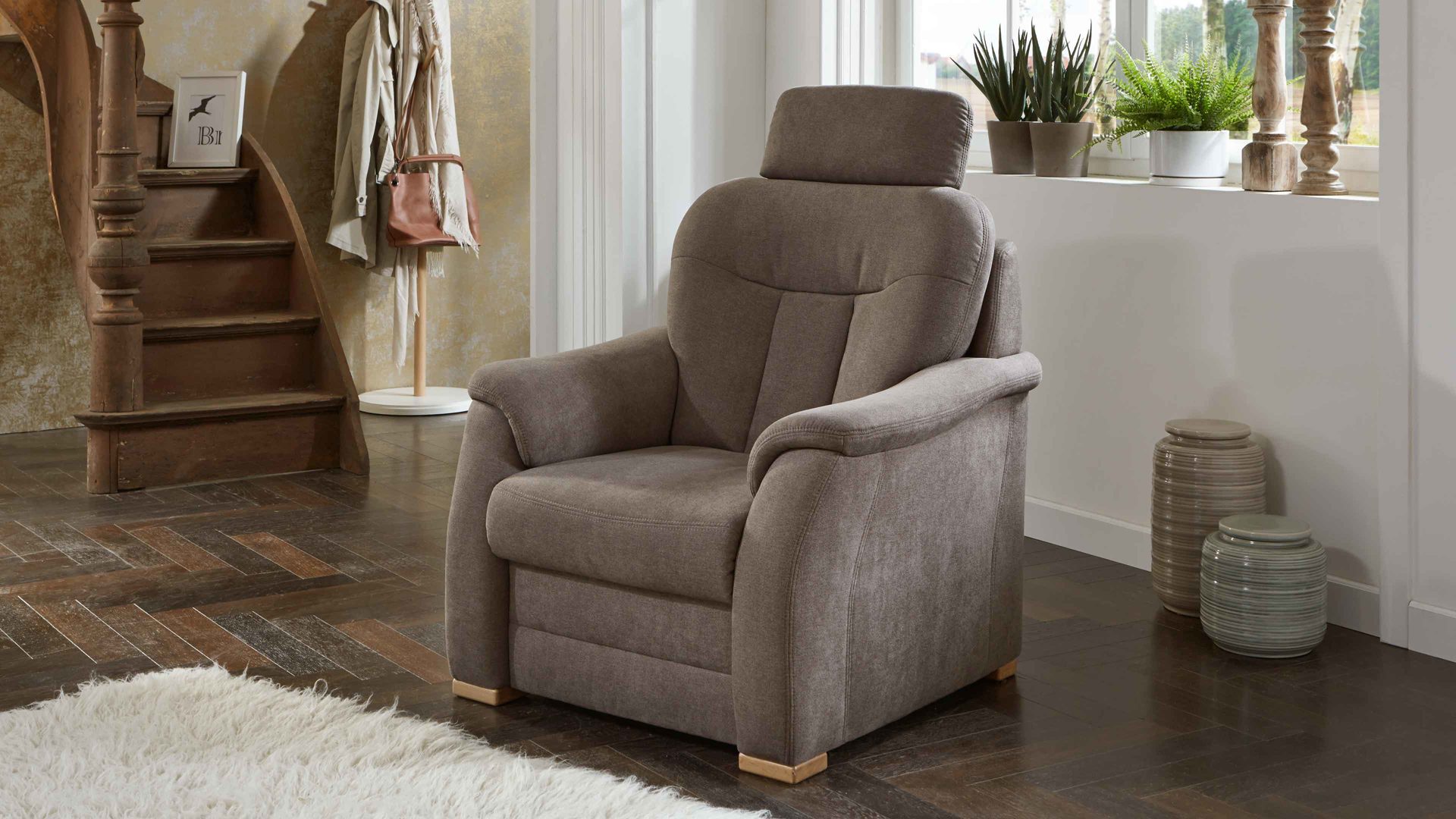 Dank der bequemen Superbonnellfederkernpolsterung im Sitz und der hochwertigen Polyätherschaumpolsterung im Rücken genießen Sie auf dem Einzelsessel hohen Komfort.