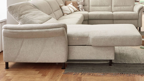 Über zwei seitlich links im Sitz angebrachte Touchbuttons lässt sich das Sofaelement stufenlos bis zur Liegeposition verstellen. Dadurch können Sie beim Lesen, Fernsehen oder puren Entspannen eine besonders komfortable Haltung einnehmen und einfach relaxen.