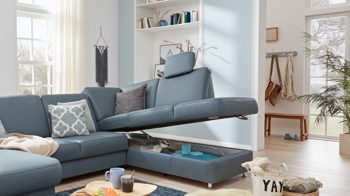 • Die Abbildung zeigt ein Wohnbeispiel, welches auch Dekoration sowie separat erhältliches Zubehör enthält. Im Lieferumfang enthalten ist eine motorische Funktion für Canapés.