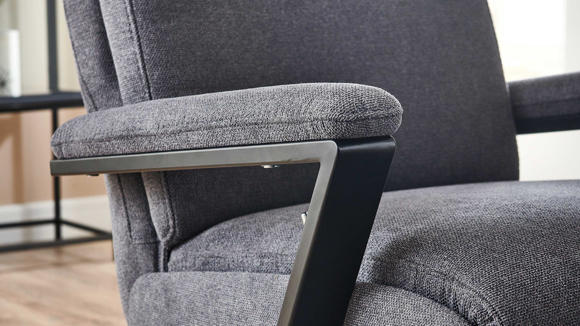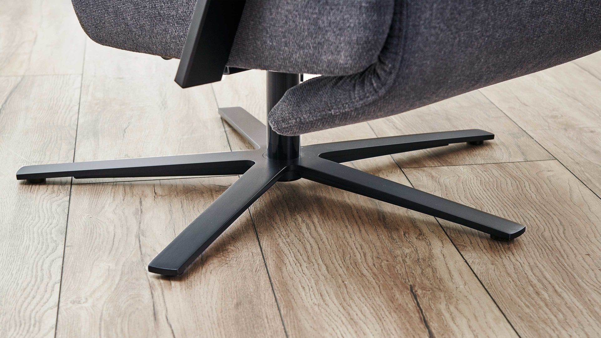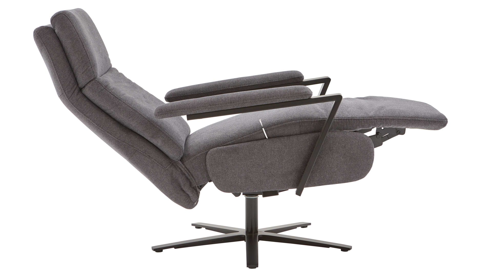 Der Relaxsessel aus dem hochwertigen Polsterprogramm OrthoSedis 4.0 kombiniert einen edlen anthrazitfarbenen Stoffbezug mit einem mattschwarz lackierten Metall-Sternfuß. Sowohl die Materialien als auch die Farben harmonieren perfekt und verleihen dem TV-Sessel eine moderne und elegante Ausstrahlung. Durch das zeitlose Design fügt er sich in verschiedene Einrichtungsstile passend ein.