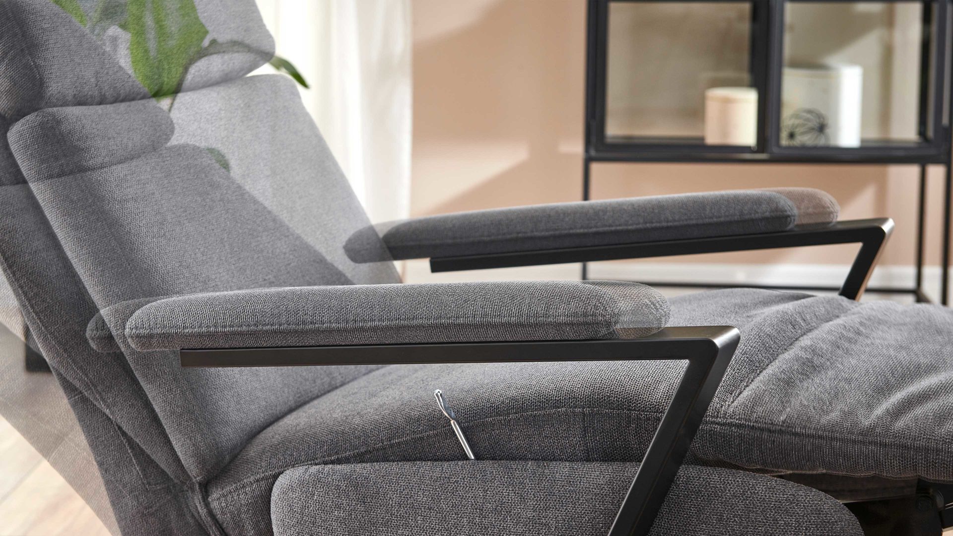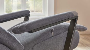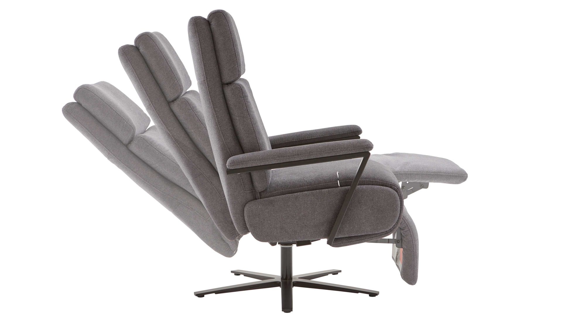 Zudem begeistern die manuellen Relaxfunktionen mit Gasdruckfeder: Die Fußstütze ist ebenso verstellbar wie die Rückenlehne. Letztere lässt sich mittels innenliegendem Bedienhebel und durch leichten Körperdruck stufenlos bis zur Liegeposition verstellen. Abgerundet wird das Funktionsspektrum durch die mehrfache manuelle Kopfpolsterverstellung mit Rasterbeschlag und Rückholfeder sowie die Drehbarkeit um 360 Grad.