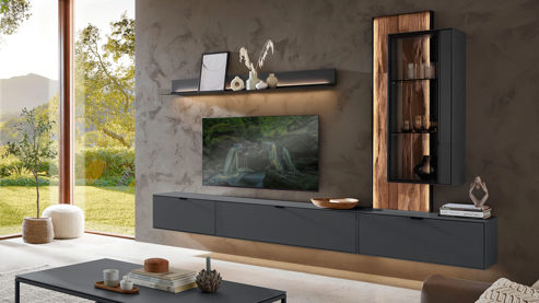 nach Wunsch kombinierbare Wohnmöbel, mit LED-Beleuchtung ergänzbar