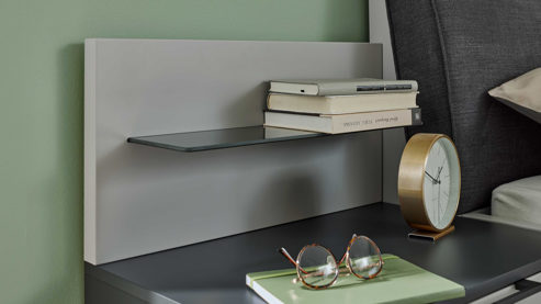 Mit Maßen von ca. 46 x 30 x 18 cm (B/LxHxT) bietet das Paneel eine praktische Ablagefläche für Bücher, Deko oder persönliche Gegenstände. Es wird linksseitig am Bett montiert und fügt sich harmonisch in das Gesamtkonzept der Serie ein.