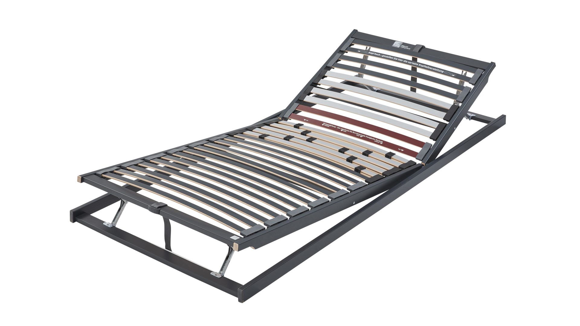 Kopf- und Fußteil lassen sich mehrfach manuell verstellen, sodass du deine Liegeposition individuell anpassen kannst – ob zum Lesen, Entspannen oder zum bequemen Hochlagern der Beine. Die leichtgängige Mechanik sorgt für einfache Handhabung und langanhaltende Funktionalität, ganz ohne komplizierte Technik.