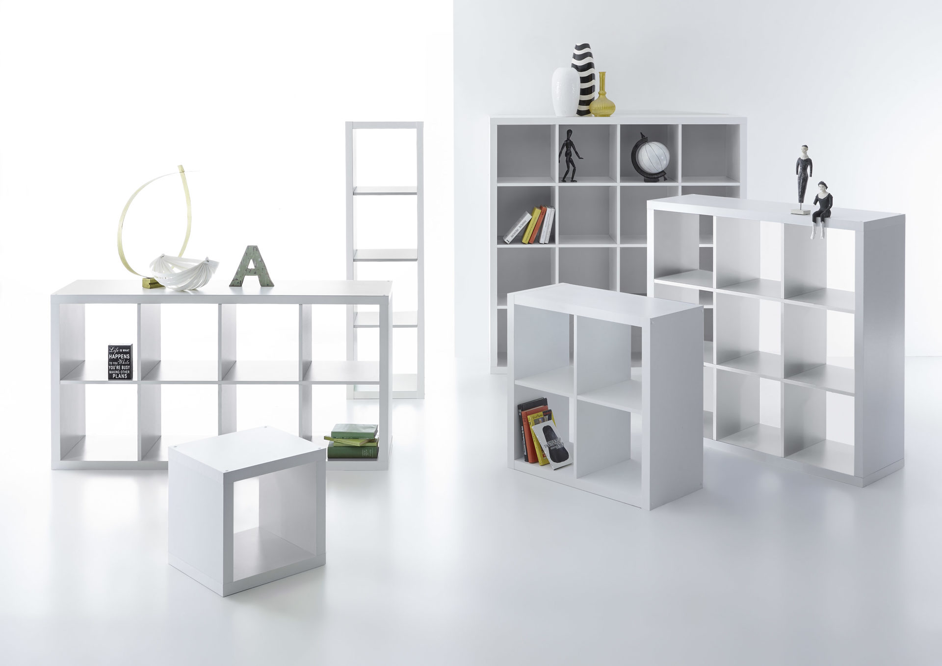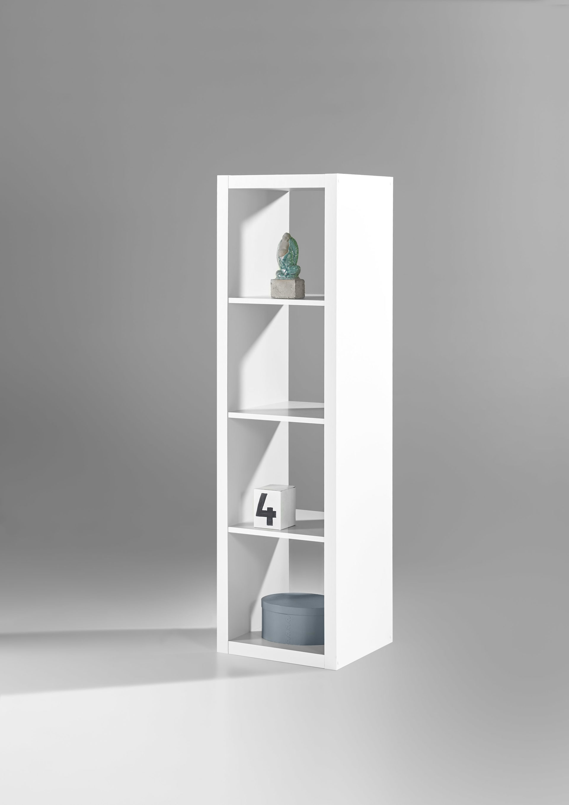 Ein Aufbewahrungsmöbel mit vielen Einsatzmöglichkeiten erhalten Sie mit diesem einreihigen Standregal. Das Wandregal präsentiert sich mit einer mattierten Oberfläche in Weiß, die somit Ihre Wohnlandschaft hervorragend komplettiert. Dort nutzen Sie das Raumteiler-Regal zum Beispiel als Bücherregal oder setzen es mit Dekoartikeln und Pflanzen in Szene. Um es als Raumtrenner zu verwenden, stellen Sie das Wohnzimmermöbel mitten in den Raum und vergrößern es am besten, indem Sie ein weiteres Fächerregal direkt daneben platzieren. Obendrein dient es im Kinderzimmer als praktischer Ordnungshelfer, denn mit Kisten oder Körben gewinnen Sie in den insgesamt vier Fächern viel Stauraum für Spielsachen oder Kuscheltiere. Der funktionale Raumteiler hat eine Bodenstärke von ca. 16 mm und ist insgesamt ca. 41 x 147 x 38 cm (BxHxT) groß.