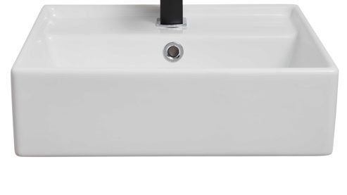Herzstück ist der weiße Keramik-Möbelwaschtisch (typ 87730) mit Hahnlochbohrung und Überlauf – pflegeleicht, robust und formschön. Die Maße liegen bei ca. 43 x 19 x 39 cm (BxHxT). Armatur und Siphon erhältst du auf Wunsch gegen Mehrpreis.