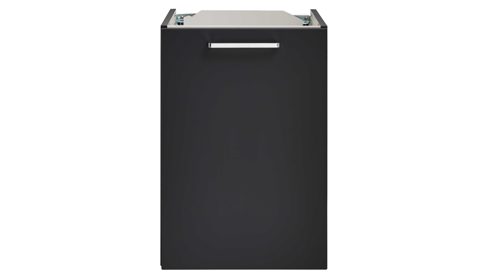 Die Interliving Bad Serie 7961 bringt dir einen modernen, edlen Waschplatz ins Bad: ultramatte graphitschwarze Lacklaminatfront, schwarzer Korpus, glänzender Chromgriff und Metallkufen – ein Look, der schlicht und hochwertig zugleich wirkt.