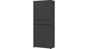 eine Schublade und vier Türen, dahinter drei verstellbare Einlegeböden
