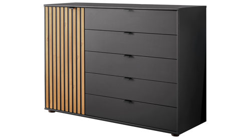 Graphit & Eiche Bianco - zwei Türen, fünf Schubladen, Breite ca. 120 cm