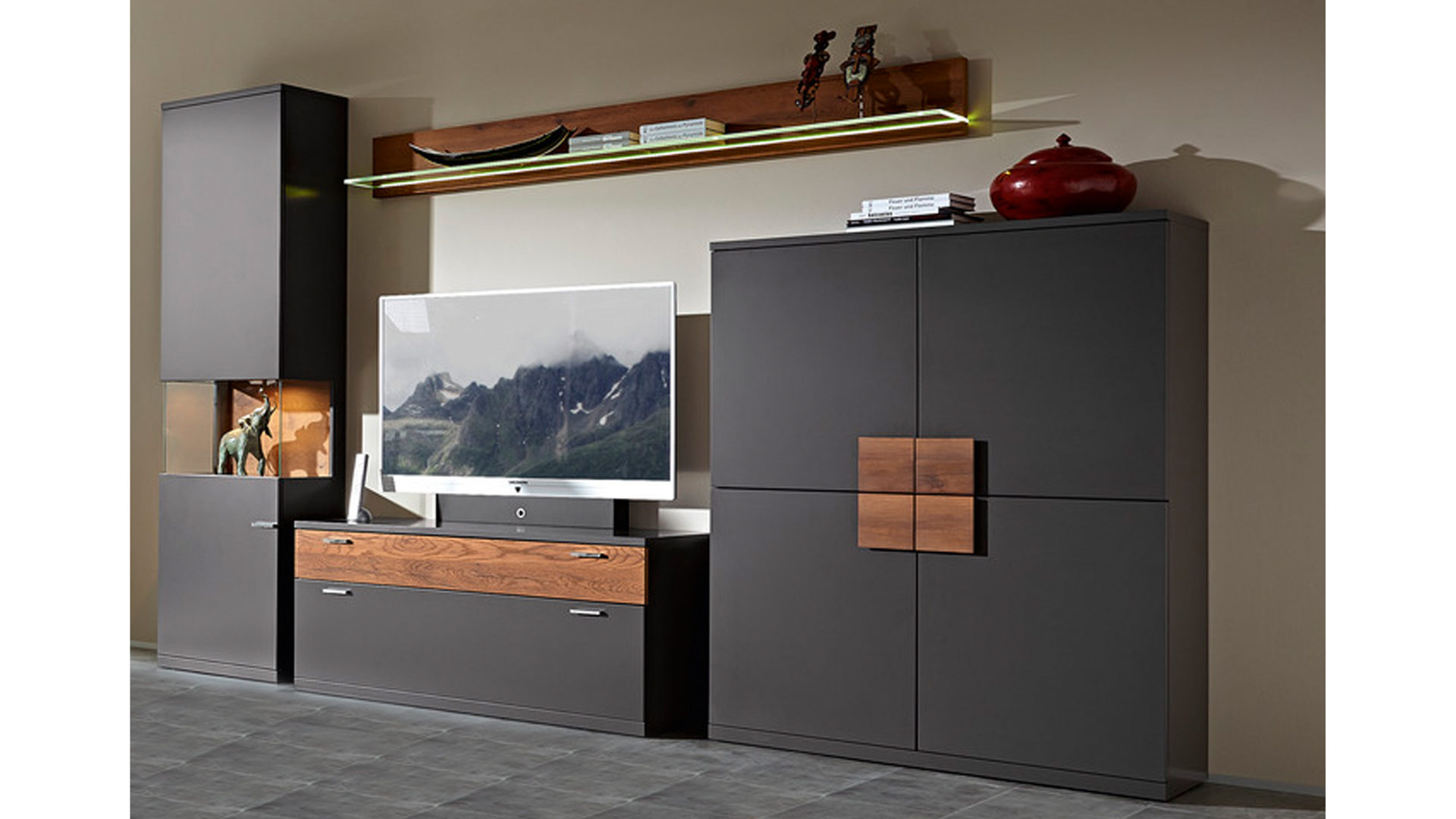 nach Wunsch kombinierbare Wohnmöbel, mit LED-Beleuchtung ergänzbar