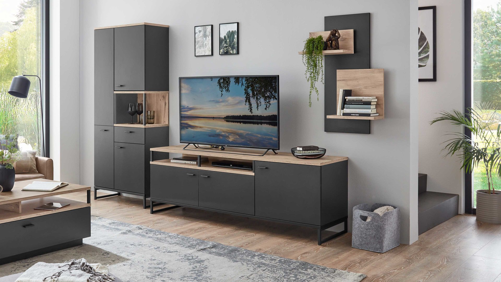 Wildeiche & Anthrazit - dreiteilig, Breite ca. 319 cm