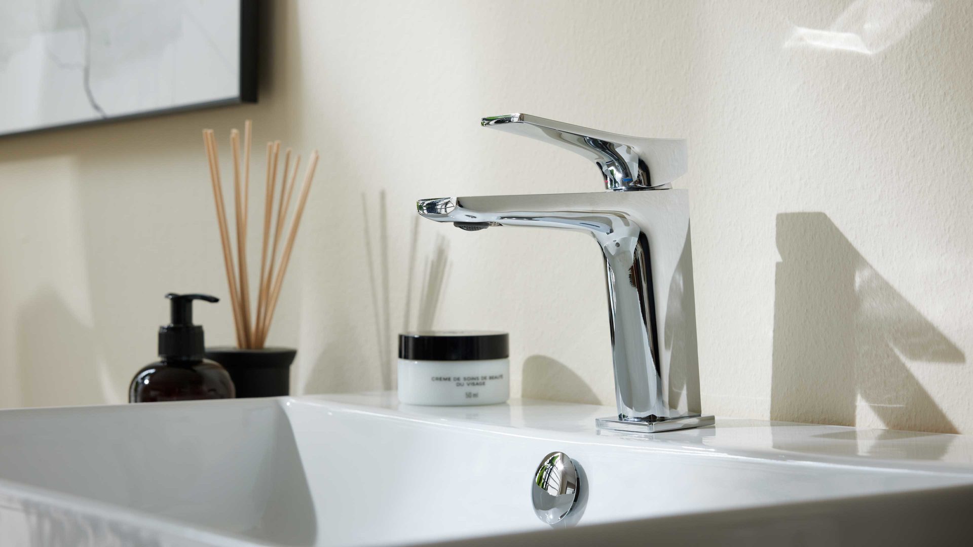 Der Aufsatz-Waschtisch (Typ 87755) aus hochglänzender, weißer Keramik überzeugt durch klare Linien und hochwertige Verarbeitung. Mit Maßen von ca. 60 x 12 x 46 cm (B/LxHxT) und einer Hahnlochbohrung passt er ideal auf die Waschtischplatte. Die verchromte Hochdruck-Mischbatterie (Typ 17707) mit Pop-up-Ventil, Anschlüssen für Warm- und Kaltwasser, 27 mm Luftsprudler und flexiblen Anschlussschläuchen ergänzt das Set perfekt – kompakt in ca. 11 x 16 cm (B/LxH).
