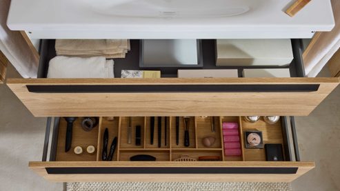 Das Badmöbel-Set ist Teil eines individuell planbaren Badmöbelprogramms und lässt sich vielseitig kombinieren und erweitern. So passt sich die Interliving Bad Serie 3730 flexibel an deine Raumverhältnisse und Gestaltungswünsche an.