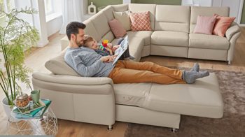 Über zwei seitlich links im Sitz angebrachte Touchbuttons lässt sich das Sofaelement stufenlos bis zur Liegeposition verstellen, sodass Sie beim Lesen, Fernsehen oder reinen Entspannen auf der Couch eine besonders bequeme Haltung einnehmen können. Auf diese Weise verschafft die motorische Relaxfunktion Ihrem Körper und Geist eine Extraportion Erholung.