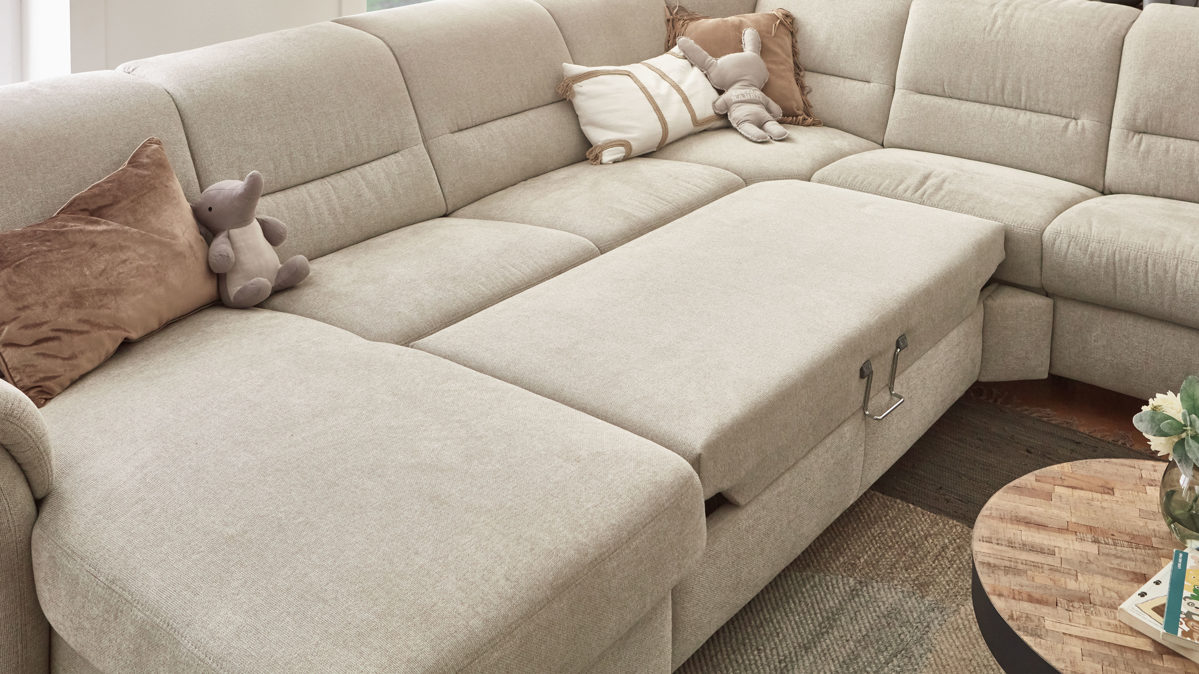 Die Querschläfer-Bettfunktion A ist eine Mehrpreis-Funktion für bestimmte Sofas aus dem edlen Modulmaster Programm MM-ZE1148.