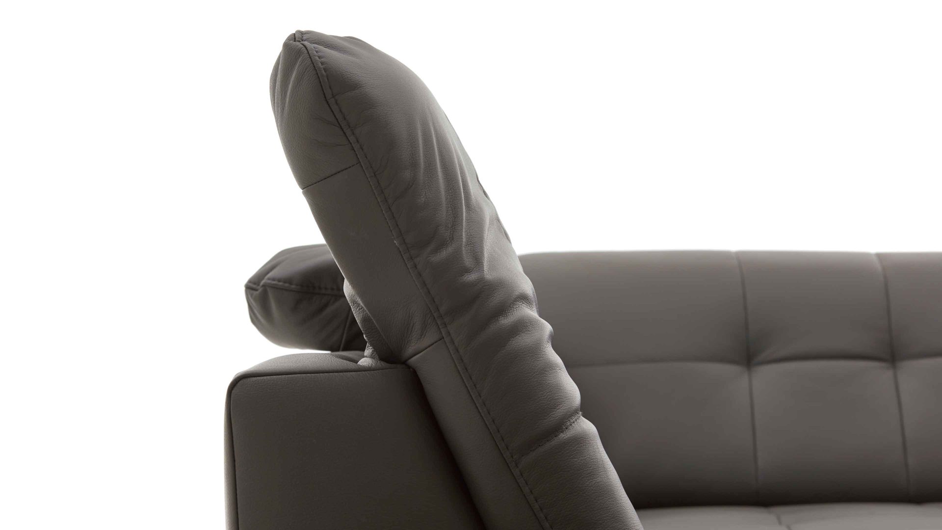 Die Kopfpolsterverstellung mit Faltenoptimierung ist ein Funktions-Mehrpreis für verschiedene Möbel aus dem Modulmaster-Polsterprogramm MM-PN1078. Mittels Rasterbeschlag können Sie das Kopfteil manuell mehrfach verstellen, sodass die Gesamthöhe der jeweiligen Couch von ca. 85 bis 100 cm variiert.