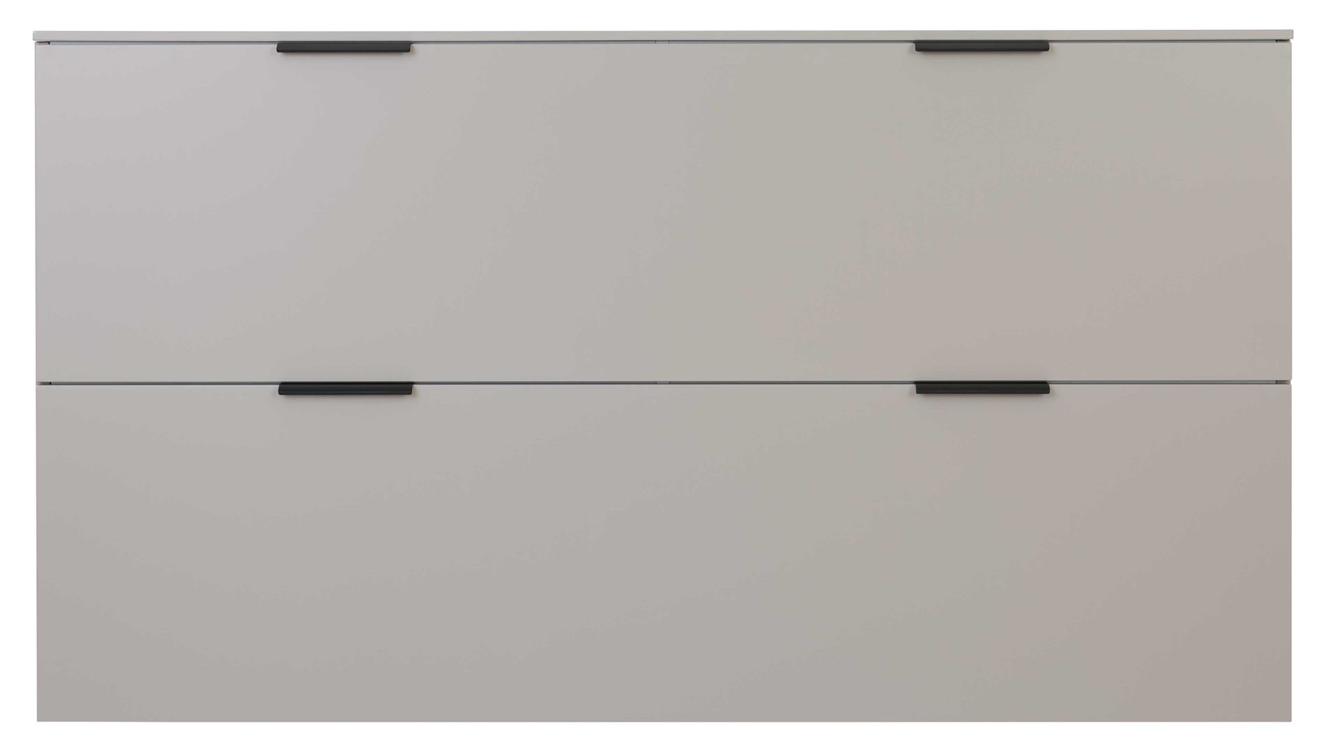 Die Kombination aus graubeigem Mattlack und mattschwarzen Metallgriffen verleiht dem Flurschrank einen edlen, zeitgemäßen Look, der sich harmonisch in verschiedenste Wohnstile einfügt – ob als Einzelstück oder als Teil eines abgestimmten Garderobenmöbel-Sets.