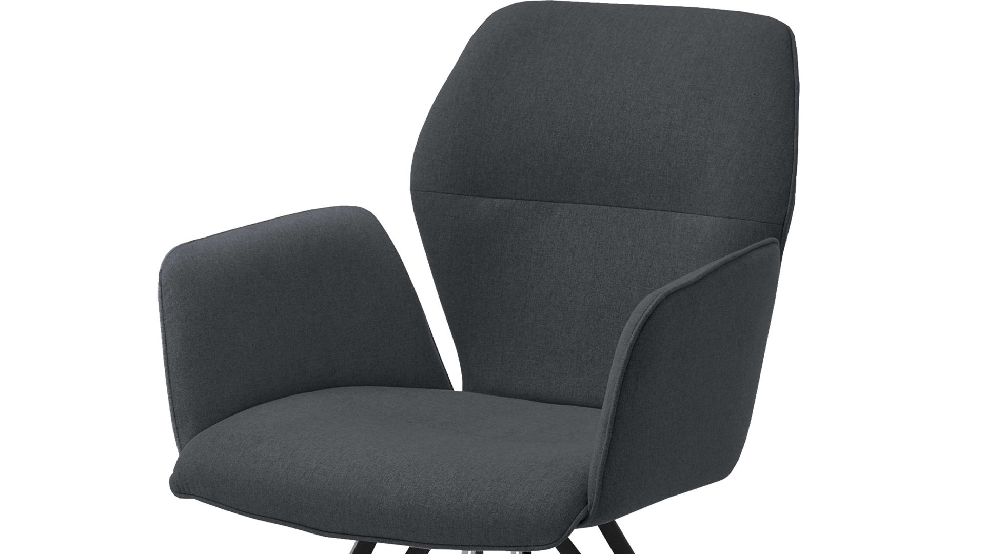 Durch die feine Haptik des Bezugs und die Armlehnen genießen Sie allerhöchsten Sitzkomfort. Darüber hinaus ist der Schalenstuhl um 180 Grad drehbar und mit einer Rückholfunktion ausgestattet. Diese Charakteristika verstärken die an sich schon ausgeprägte Bequemlichkeit, was beispielsweise dann spürbar wird, wenn Sie sich der Person, die am Tisch neben Ihnen sitzt, frontal zuwenden möchten.