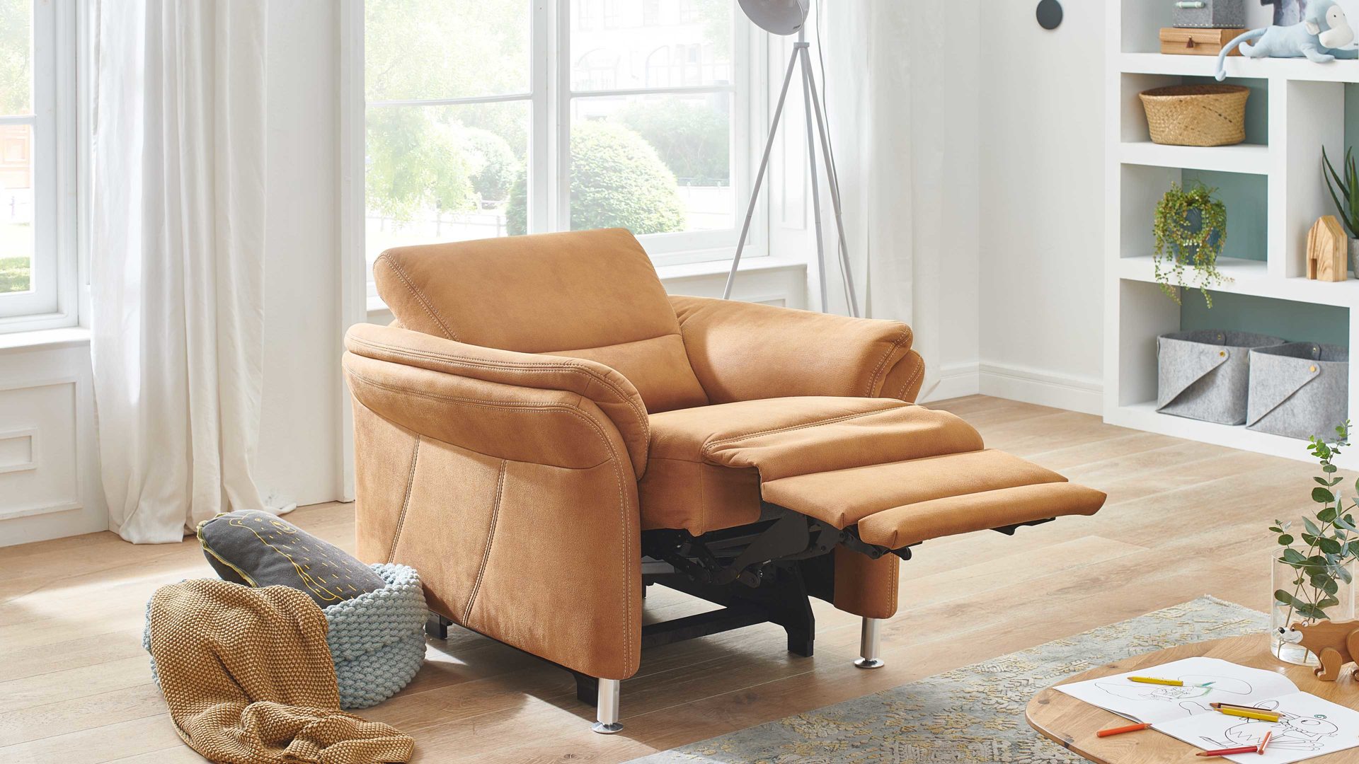 Der Sessel sowie weitere dargestellte Einrichtungsgegenstände sind separat gegen Mehrpreis bestellbar.