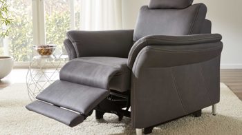Hier die genaue Funktionsweise von WallAway: Während die Beinauflage auf Sitzhöhe fährt, bewegt sich der Sitz noch einige Zentimeter nach oben und vorne, sodass Sie sich von Kopf bis Fuß in eine komfortable Relaxposition begeben können. Diese lässt sich bis zur Liegeposition verstellen. Der Grund für die Bezeichnung der Funktion ist, dass der Rücken stets wandfrei bleibt. Demnach kann das jeweilige Möbel problemlos an seinem gewöhnlichen Standort bleiben und muss nicht vorgezogen werden.