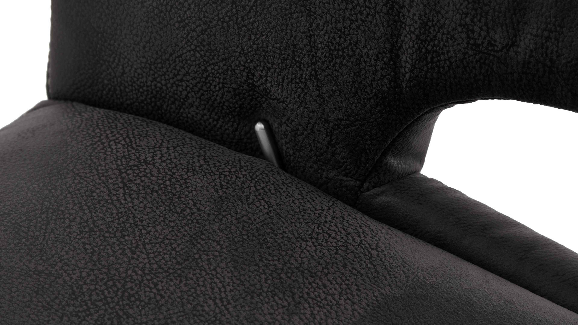 anthrazitfarbener Mikrofaserbezug mit Prägung in Lederoptik und heller Doppelstepp-Kontrastnaht
