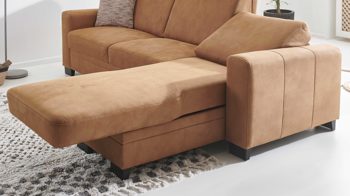 Mittels Handschalter lässt sich das Sofaelement bequem bis zur Liegeposition verstellen. Dadurch können Sie beim Lesen, Fernsehen oder puren Entspannen eine besonders komfortable Haltung einnehmen und einfach relaxen. Im komplett ausgefahrenen Zustand beträgt die Liegelänge auf dem Canapé ca. 211 cm.
