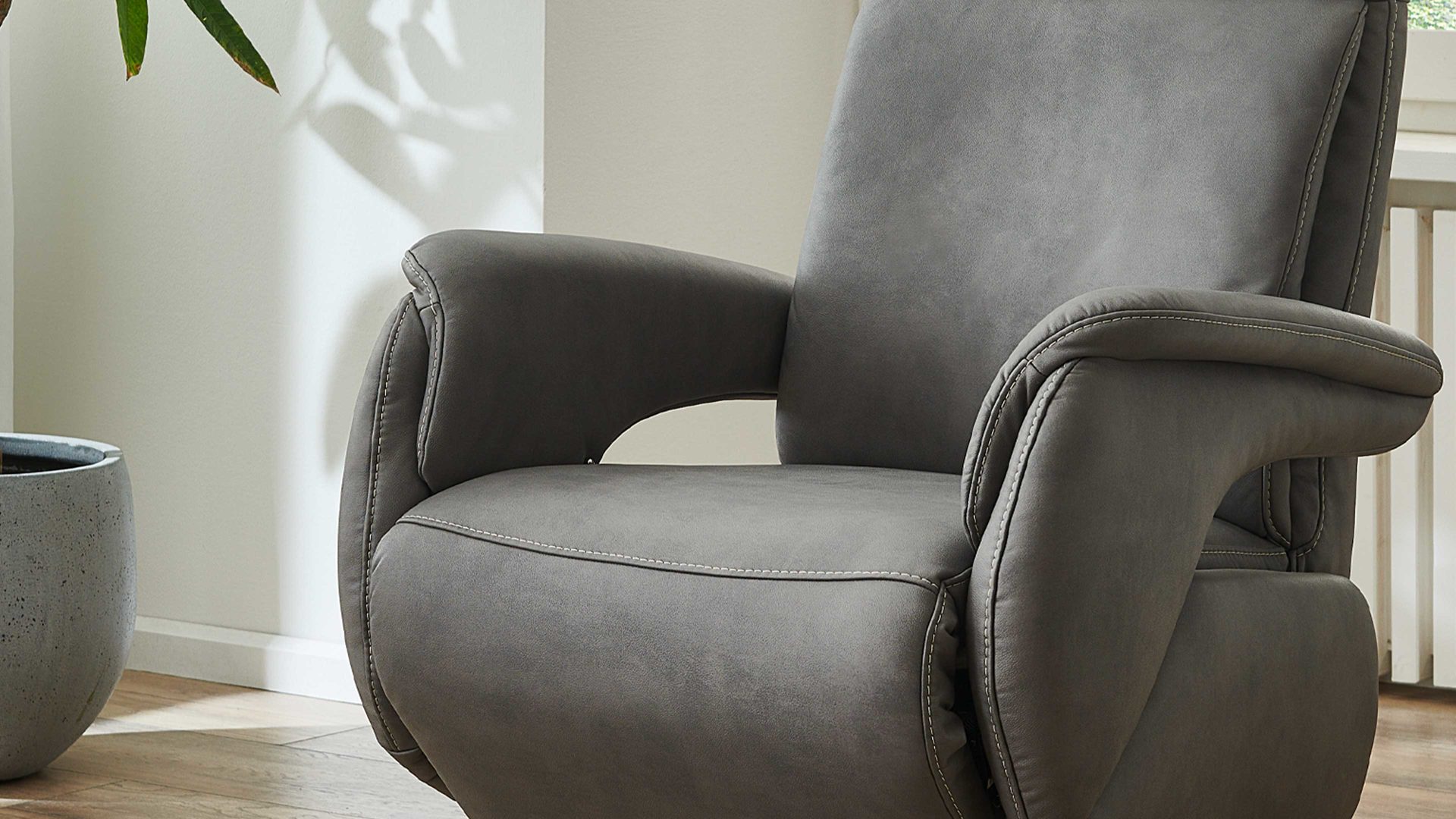 Optional können Sie den Drehsessel auch mit motorischen Relaxfunktionen erhalten.