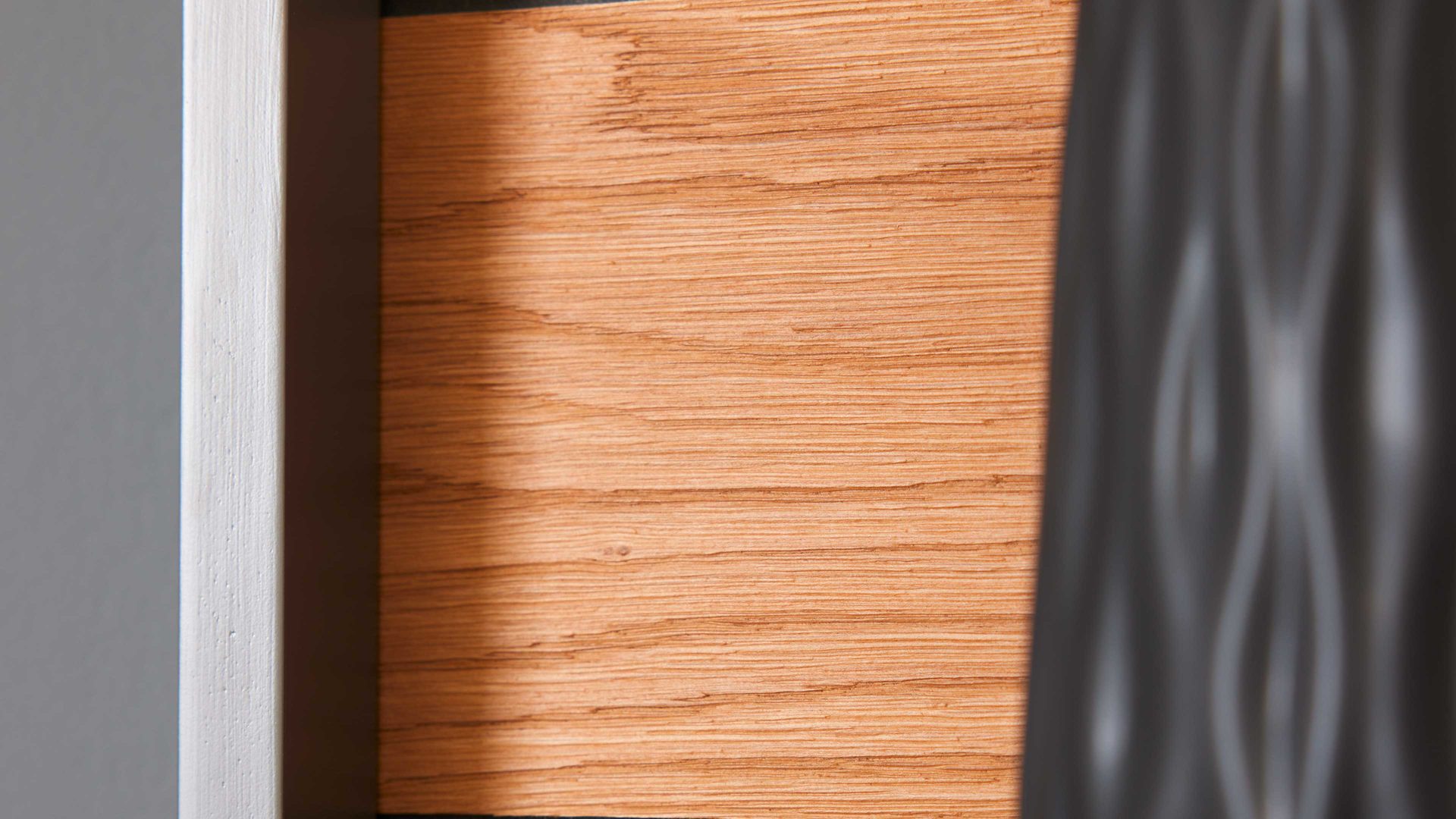 Das Wandboard aus der Interliving Wohnzimmer Serie 2030 kombiniert modernes Design mit hochwertiger Verarbeitung – perfekt als stilvolles Wohnzimmerregal, elegantes Esszimmerregal oder dekoratives Solitärmöbel. Die wolframgrauen Lackoberflächen verleihen dem Board eine ruhige, elegante Ausstrahlung, während die Rückwand mit Spaltholz auf schwarzer MDF für einen spannenden Materialkontrast sorgt und dem Möbelstück eine natürliche, warme Note gibt.