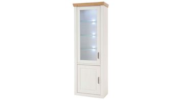 Funktionale Höhepunkte sind die kratz- und stoßfesten Melaminoberflächen. Optional lässt sich die Einzelvitrine auch mit einer bezaubernden LED-Beleuchtung ergänzen. Zum hochwertigen und attraktiven Wohnprogramm Brixen gehören noch zahlreiche weitere Wohnmöbel im gleichen oder ähnlichen Design, sodass Sie Ihre Wohnzimmereinrichtung individuell zusammenstellen können.