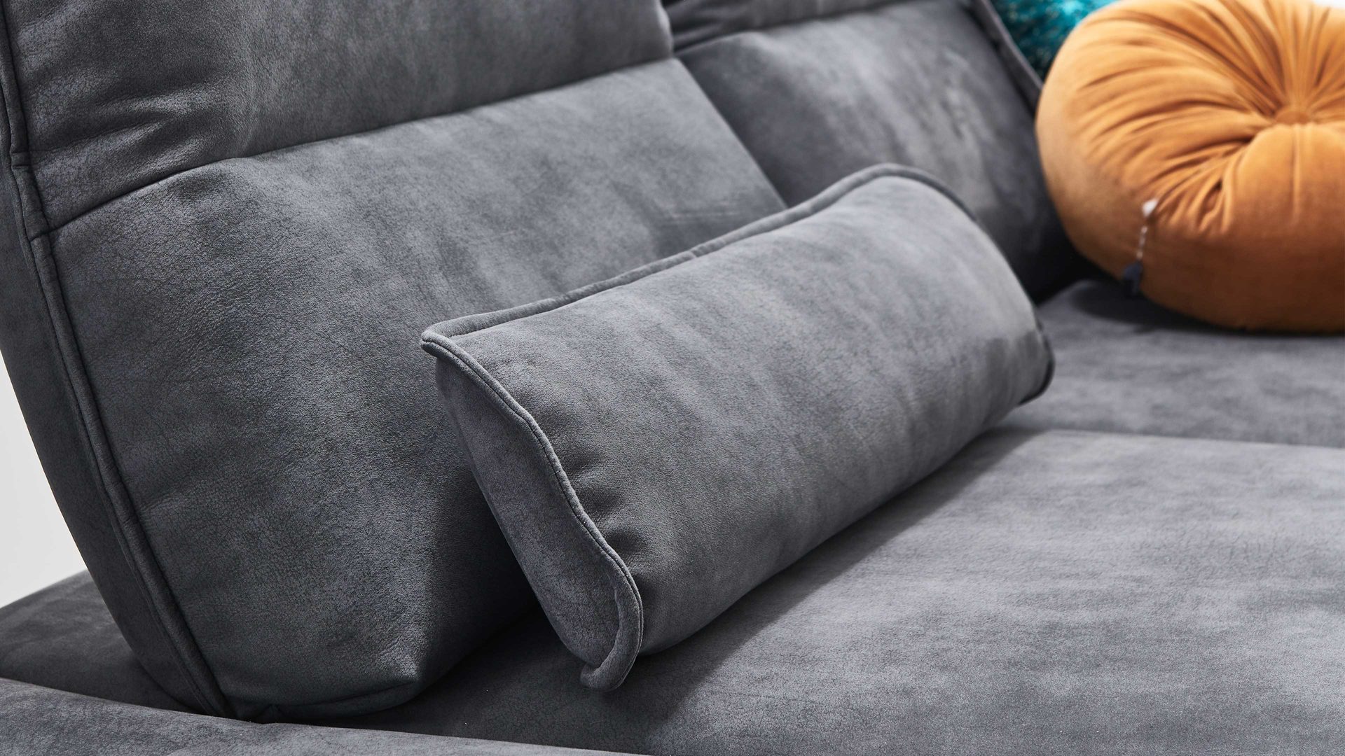 Dieses Nierenkissen ist ein edles und bequemes Zubehör für die Designer-Sofas aus der W.SCHILLIG Polsterserie Broadway. Es verleiht der jeweiligen Couch sowohl optisch als auch praktisch das gewisse Etwas. Durch den elephantgrauen Stoffbezug mit Biese strahlt das Kissen moderne Eleganz aus. Zudem ist es mit einer hochwertigen Füllung ausgestattet und dient als komfortable Stütze des unteren Rückens. Die Maße des Nierenkissens betragen ca. 70 x 10 x 18 cm (LxHxT).