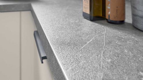 Die Culineo® Einbauküche C615 verbindet modernes Design mit durchdachter Funktionalität und einer Farbgestaltung, die Ruhe und Eleganz ausstrahlt. Matte magnolienfarbene Oberflächen mit schwarzen Metallgriffen treffen auf Arbeitsplatten in heller Stromboli-Nachbildung bringen Leichtigkeit in das Gesamtbild und setzen einen natürlichen, freundlichen Akzent.