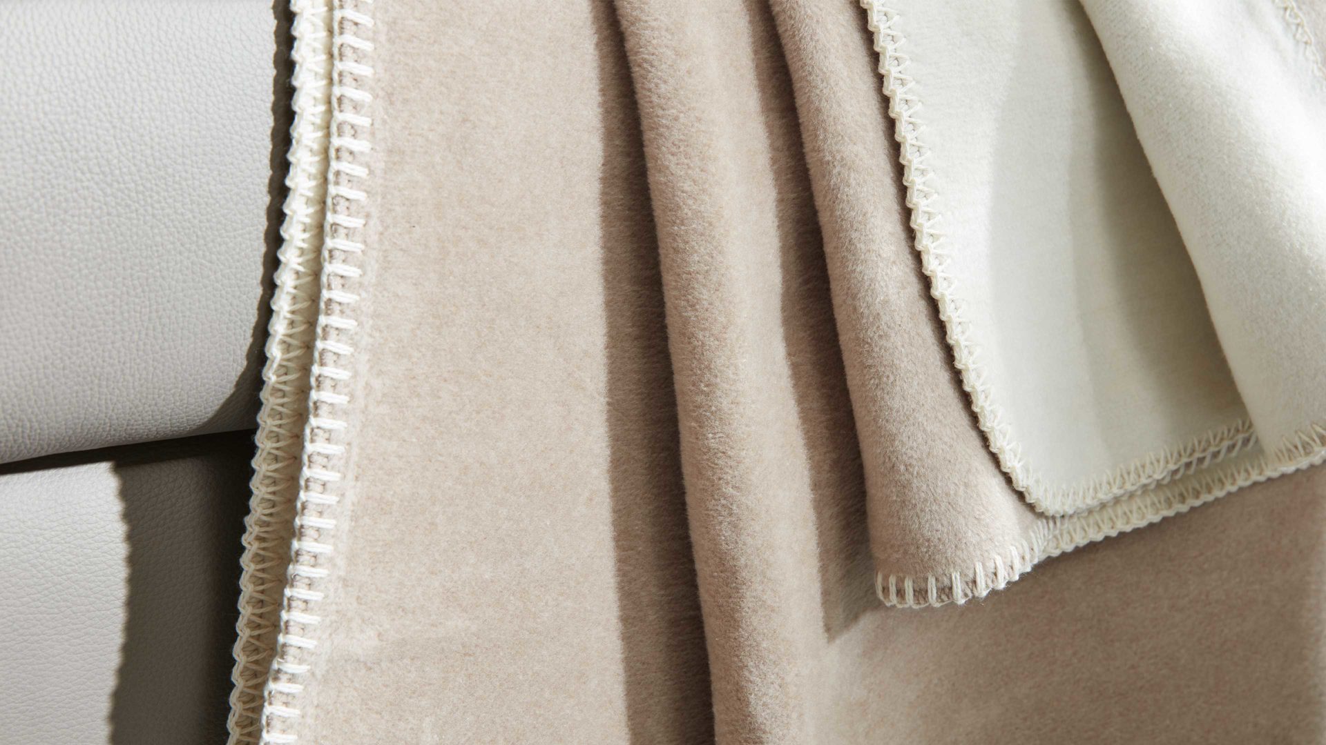 Der dichte, gleichmäßige Flor verleiht der Decke eine wunderbar weiche Oberfläche, die angenehm wärmt und zugleich atmungsaktiv bleibt. Das hochwertige Mischgewebe aus 58 % Baumwolle, 35 % Polyacryl und 7 % Polyester sorgt für Langlebigkeit, Formstabilität und ein besonders hautsympathisches Gefühl. Die elegante Kombination aus sand- und naturfarbenem Gewebe schafft einen zeitlos edlen Look, der sich harmonisch in verschiedene Wohnstile einfügt.