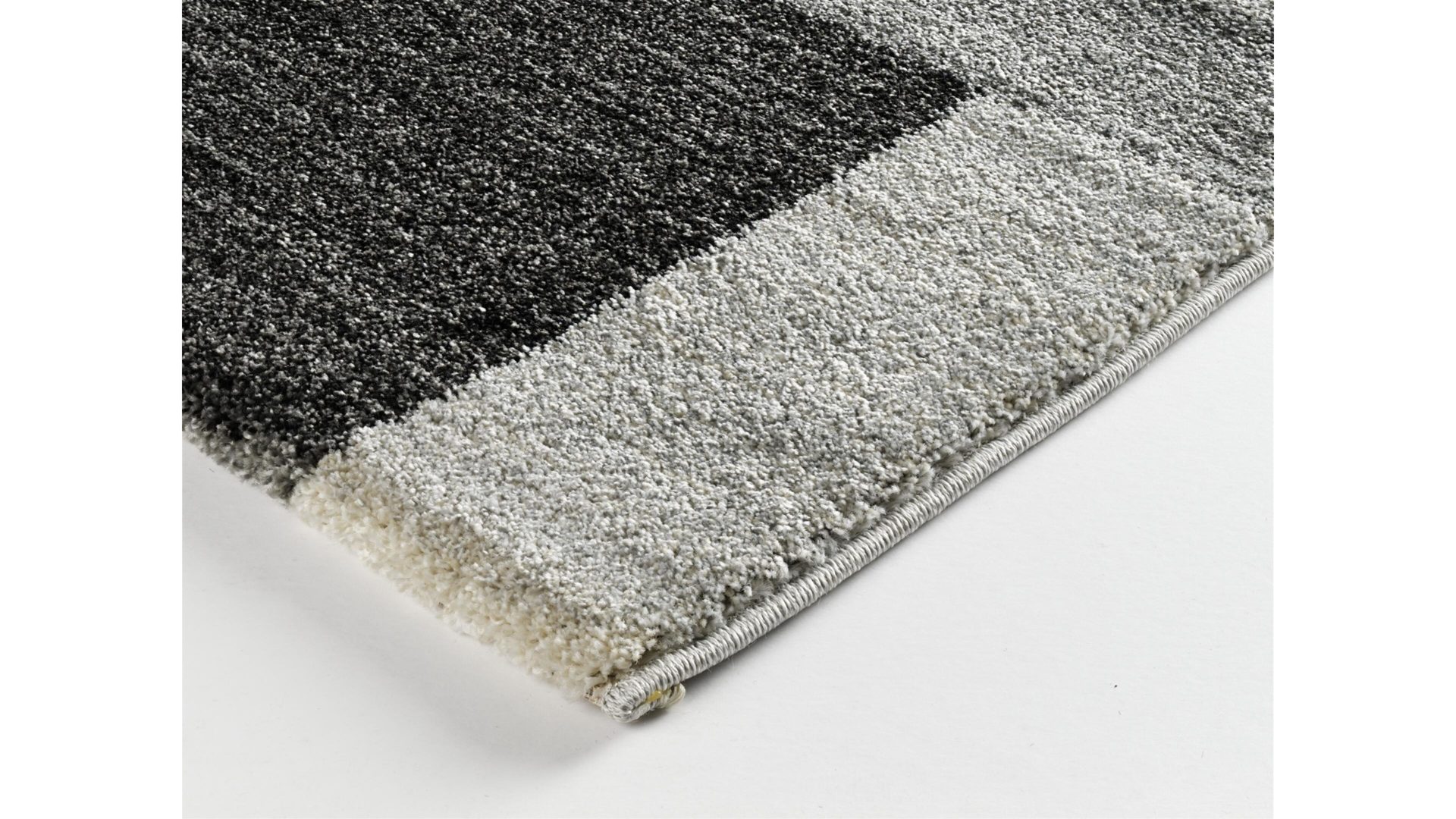 Moderne Mosaikstruktur in angenehm-dezenten Farbverläufen. Dieses Modell gehört zu den Wohnaccessoires mit geometrisch angeordneten Vierecken in verschiedenen Größen und Kolorierungen. Sie sorgen für Form- und Farbenvielfalt, gleichmäßige Struktur und erzeugen ein harmonisches Karreefeld des Designerteppichs Castle Beppo. Der Webteppich ist seitlich gekettelt und vor Kopf umgeschlagen.