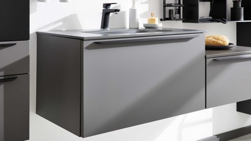 Alle Schubladen und Türen verfügen über Softclose-Technik mit Selbsteinzug, sodass alles leise und schonend schließt. Gleichzeitig handelt es sich um ein individuell planbares Badmöbelprogramm, mit dem du dein Bad passgenau und stilvoll gestalten kannst.