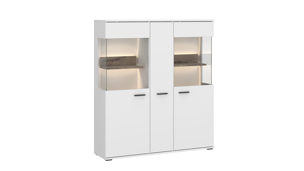 • Die Abbildung zeigt ein Wohnbeispiel, welches auch Dekoration sowie separat erhältliches Zubehör enthält. Im Lieferumfang enthalten ist ein Highboard ohne LED-Beleuchtung.