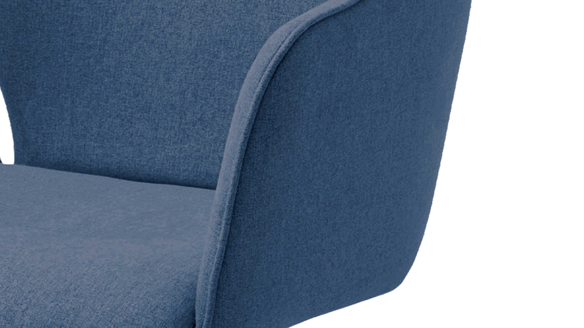 Der Armlehnstuhl Merlot präsentiert sich modern, kreativ und stilvoll designt. Er kombiniert einen blauen Webstoffbezug mit einem schwarz pulverbeschichteten Vierfuß-Flachstahlgestell. Letzteres sorgt für eine stabile Basis sowie für puristisch-elegantes Flair im Esszimmer. Dazu trägt auch der tiefe Farbton des hochwertigen, angenehm weichen Stoffbezugs bei. Überdies unterstreicht die spezielle Formensprache des Gestells die originelle Ausstrahlung des Vierfußstuhls.