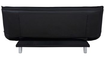 Das Schlafsofa Faith beeindruckt mit seinem modernen, eleganten Design sowie der Funktionalität, die es zu einem vielseitigen Polstermöbel macht. Für die nötige Standstabilität sorgen verchromte Metallfüße. Der schwarze Kunstlederbezug wirkt besonders edel und fühlt sich zudem sehr angenehm an. Einen gelungenen Akzent setzt die Quersteppung der Sitz- und Rückenfläche. Der Rücken der Couch ist mit schwarzem Nesselstoff bezogen.