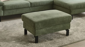 olivgrüner Feincordbezug und mattschwarze Metallfüße