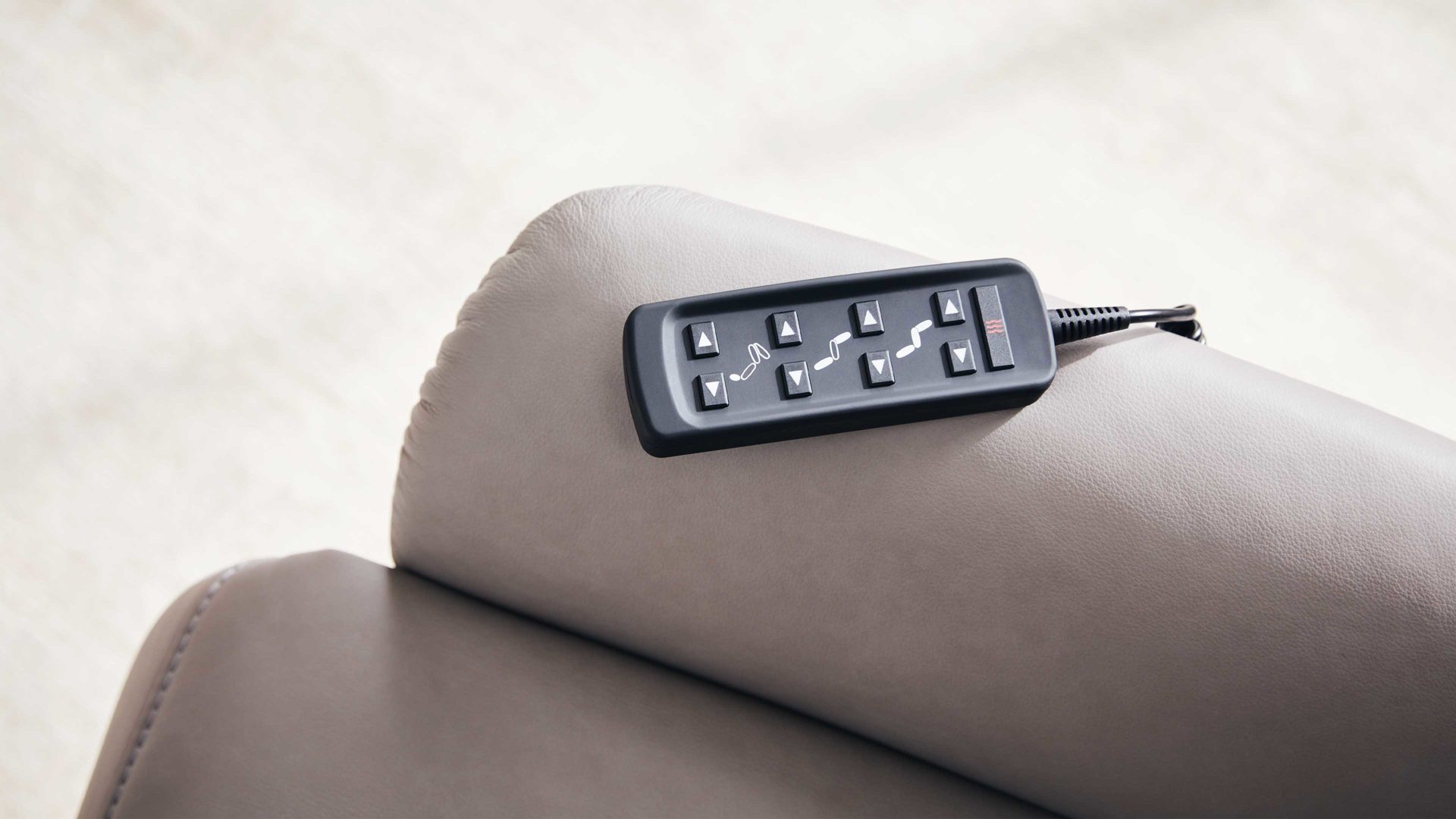 Für höchsten Komfort lässt sich der Sessel nach Wunsch mit motorischen Funktionen ausstatten. In den elektrischen Varianten steuerst du Rücken- und Fußteil bequem über den Magnethandschalter mit Spiralkabel, der sich dank magnetischer Befestigung seitlich am Sessel fixieren lässt. Auf Wunsch kann der EASYSWING Sessel mit einer Sitz- und Rückenheizung oder einer elektrischen Kopfteilverstellung ausgestattet werden.