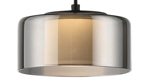 matt schwarzes Metall kombiniert mit einem runden Lampenschirm aus Rauchglas
