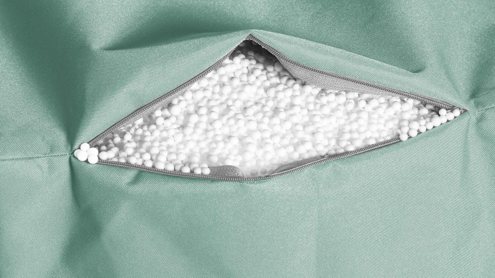 Der eukalyptusfarbene Sitzsack-Sessel Made in Germany ist genau das richtige Sitzmöbel zum Lesen, Entspannen oder zum Fernsehen.