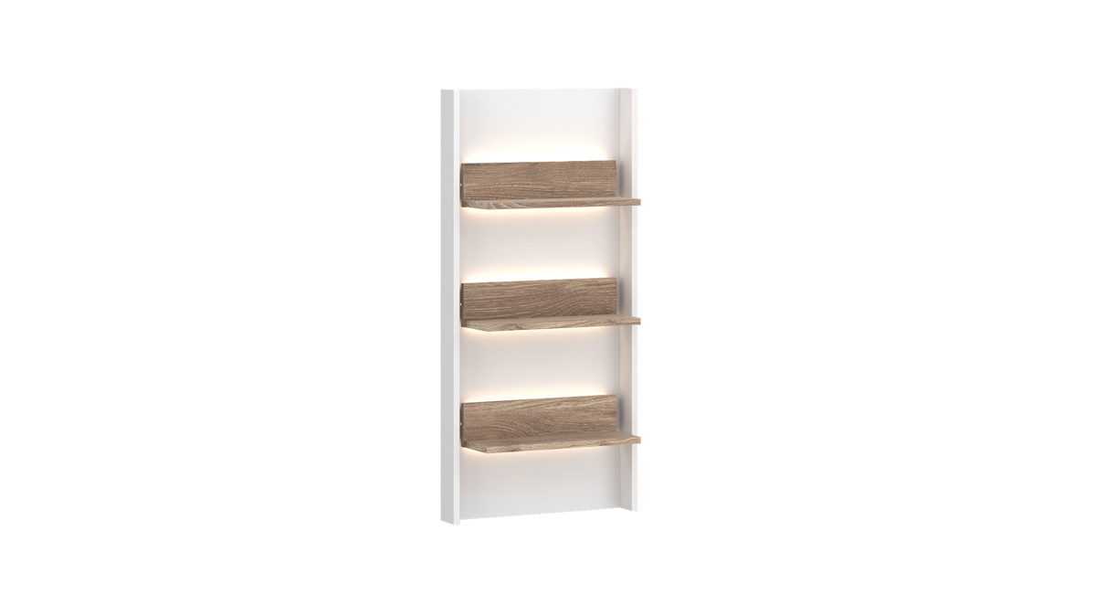 Korpus Melaminharzbeschichtung in Alpinweiß, kombiniert mit Regalböden in Viking Eiche Holznachbildung