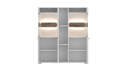 • Die Abbildung zeigt ein Wohnbeispiel, welches auch Dekoration sowie separat erhältliches Zubehör enthält. Im Lieferumfang enthalten ist ein Highboard ohne LED-Beleuchtung.