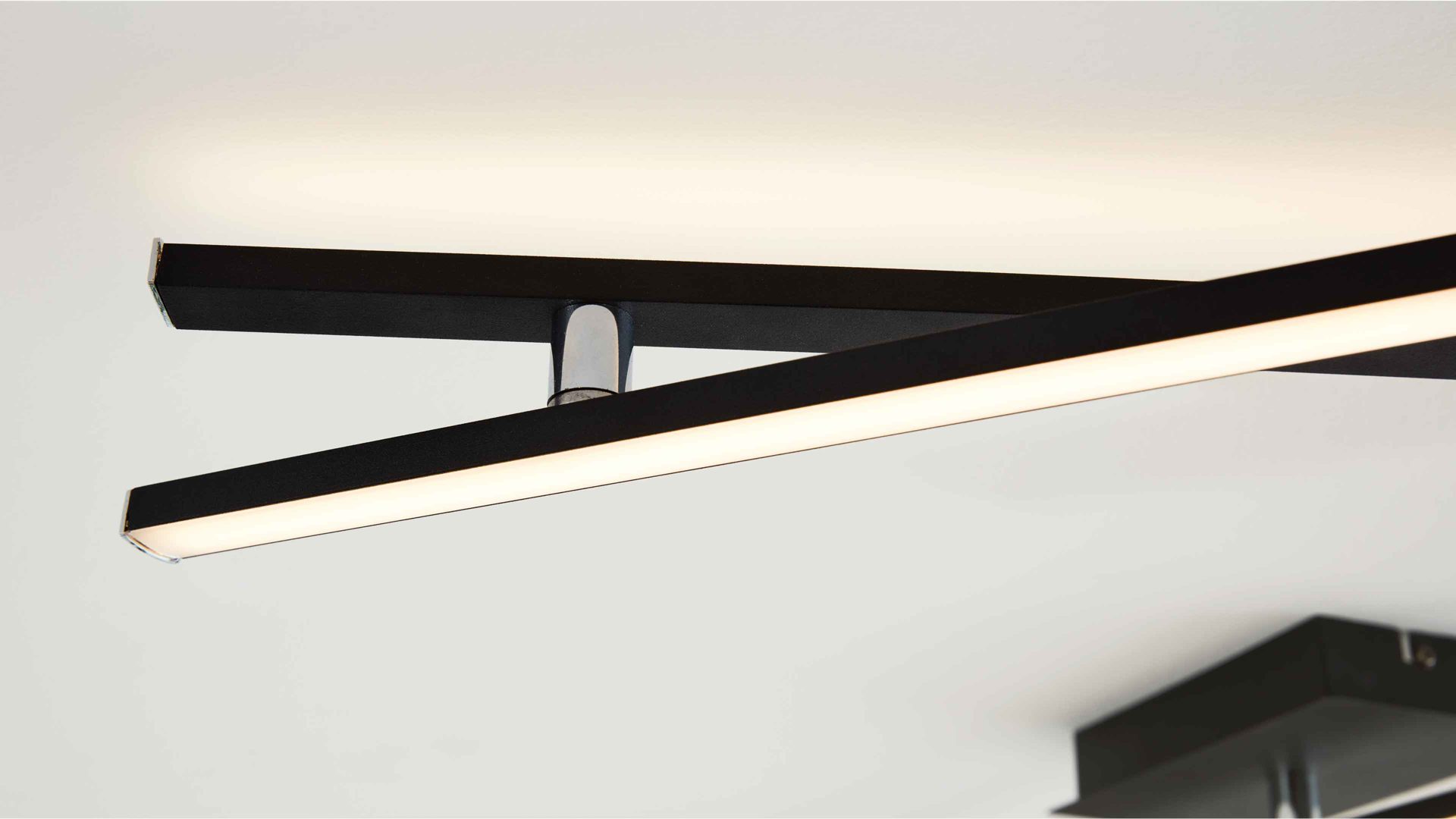 Die außergewöhnliche Deckenleuchte aus der Interliving Leuchten Serie 9339 überzeugt mit ihrem abstrakten Design und der gelungenen Materialkombination aus mattschwarzem Metall, glänzendem Chrom und weißem Acrylglas. Die markante Formensprache verleiht ihr einen modernen, eleganten Charakter und macht sie zu einem echten Blickfang in deinem Zuhause. Mit Maßen von ca. 345 x 7 x 58 cm (LxHxT) eignet sie sich ideal für Wohn-, Schlaf- oder Arbeitsbereiche und bringt stilvolle Helligkeit in jeden Raum.