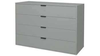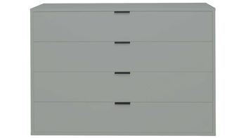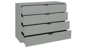 Die stabile Kommode ist mit vier Schubladen ausgestattet, die Ihnen beispielsweise Stauraum für Wäsche bieten und durch die Softclose-Funktion sanft und leise schließen. Auf dem Oberboden haben Sie Platz für eine Lampe und auch andere Deko. Die Maße des Kommodenschranks betragen ca. 119 x 87 x 45 cm (BxHxT).