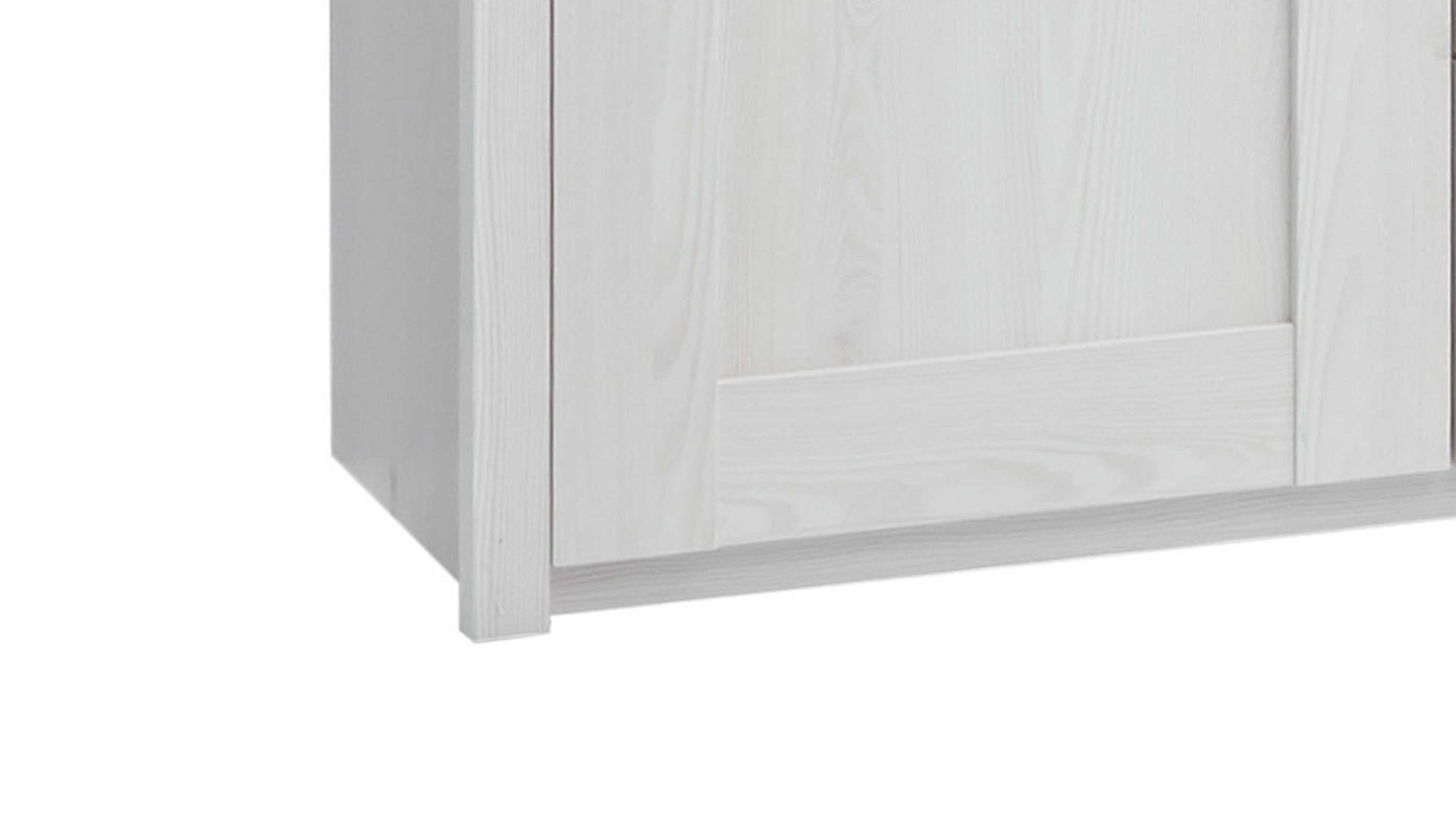 Hinter den zwei Türen befinden sich jeweils zwei Holzböden. Hinzu kommen vier Schubladen in der Mitte. Somit haben Sie jede Menge licht- und staubgeschützten Stauraum für Unterwäsche, Handtücher und sonstige Textilien sowie kleine Accessoires. Auch der Oberboden eignet sich als Ablage - etwa für dekorative Elemente wie Vasen, Skulpturen und Bilderrahmen mit persönlichen Fotos. Die Maße des in allen Belangen absolut überzeugenden Kommodenschranks belaufen sich auf ca. 150 x 90 x 42 cm (BxHxT).