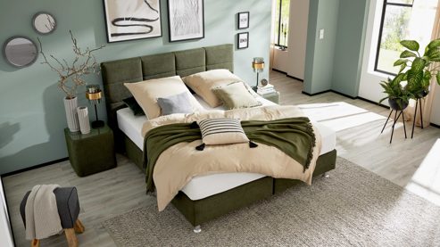 Luxuriöser Schlaf – das moosgrüne Boxspringbett aus der Interliving Boxspringbett Serie 1402