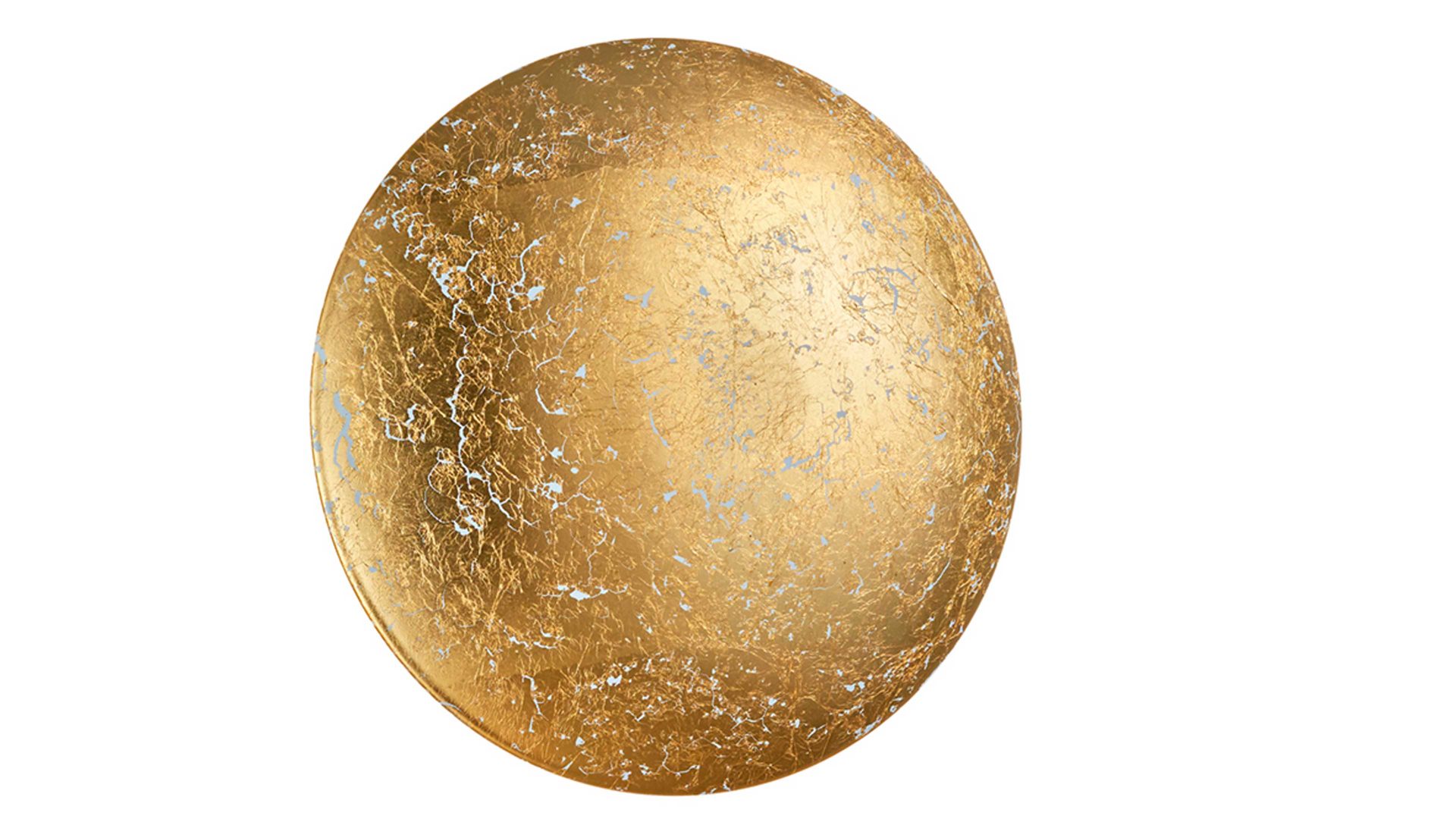blattgoldfarbenes Metall, kombiniert mit matt sandschwarzem Metall und weißem Acrylglas